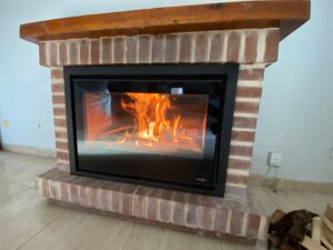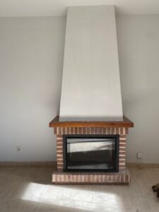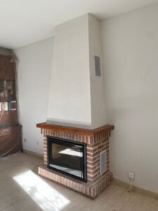 Instalación de un cassette de leña Ferlux Teide 80. Cerramiento de chimenea abierta para aprovechar mejor el calor, aprovechar más la leña y generar menos contaminantes. Se instaló este casette de acero y vermiculita con sistema de doble combustión para que aprovechen más la leña y tengan más calor con menos combustible, se instaló tubería de humos hasta tejado, aislando el interior de la chimenea y abriendo rejillas de ventilación. Está encantada, con el calor que genera.
