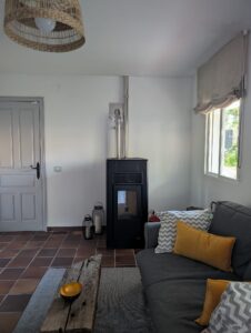 Instalación de estufa de pellet canalizable Ferlux Lyra de 15 kw en color Negro mate. Instalación de estufa de pellet canalizable, con salida de humos por interior de la chimenea de obra, hasta tejado, y canalización de aire caliente. Con esta estufa van a calentar buena parte de la vivienda. Esta estufa queda preciosa en la vivienda. Los clientes están encantados con esta estufa.